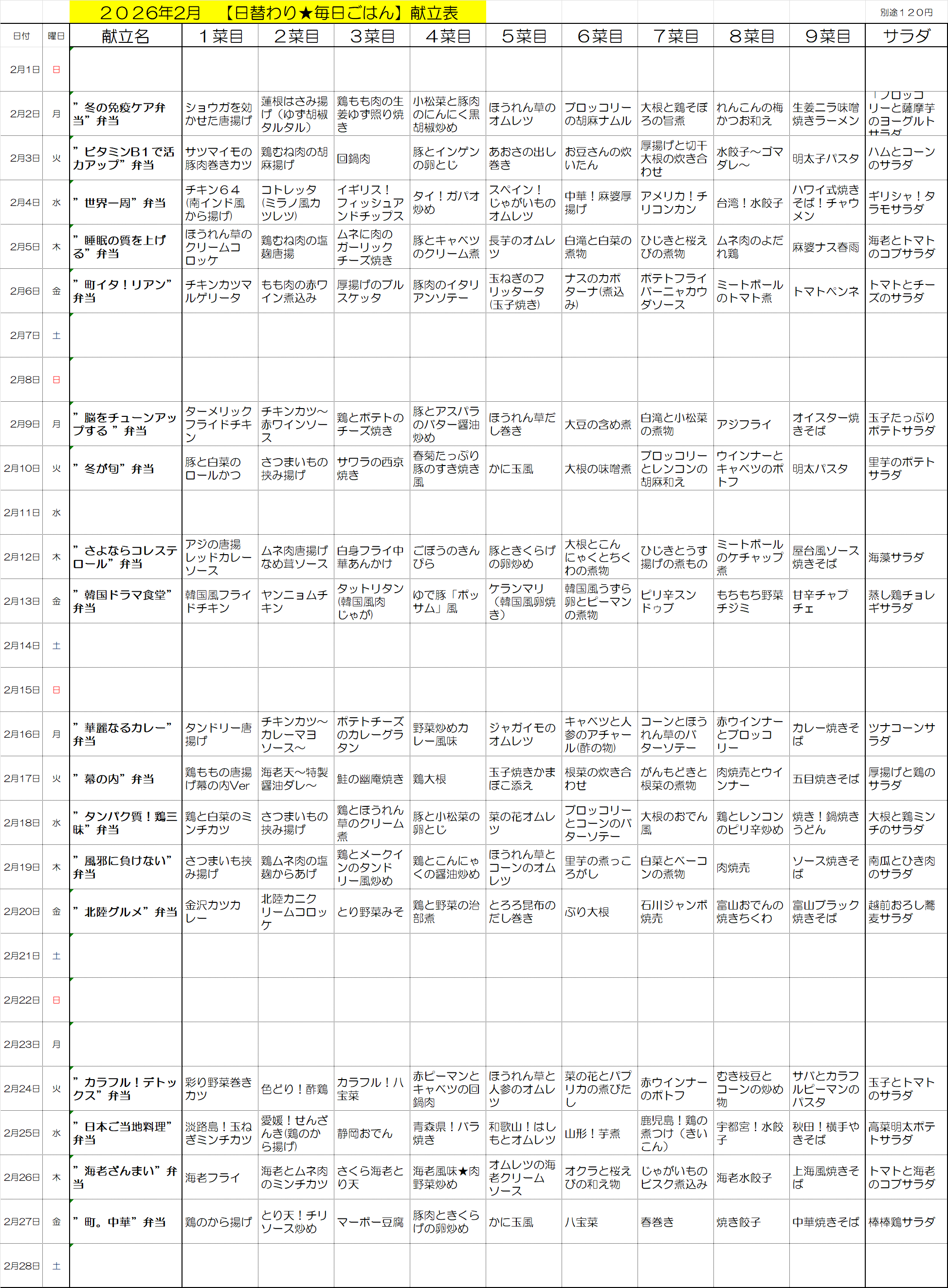 週間メニュー